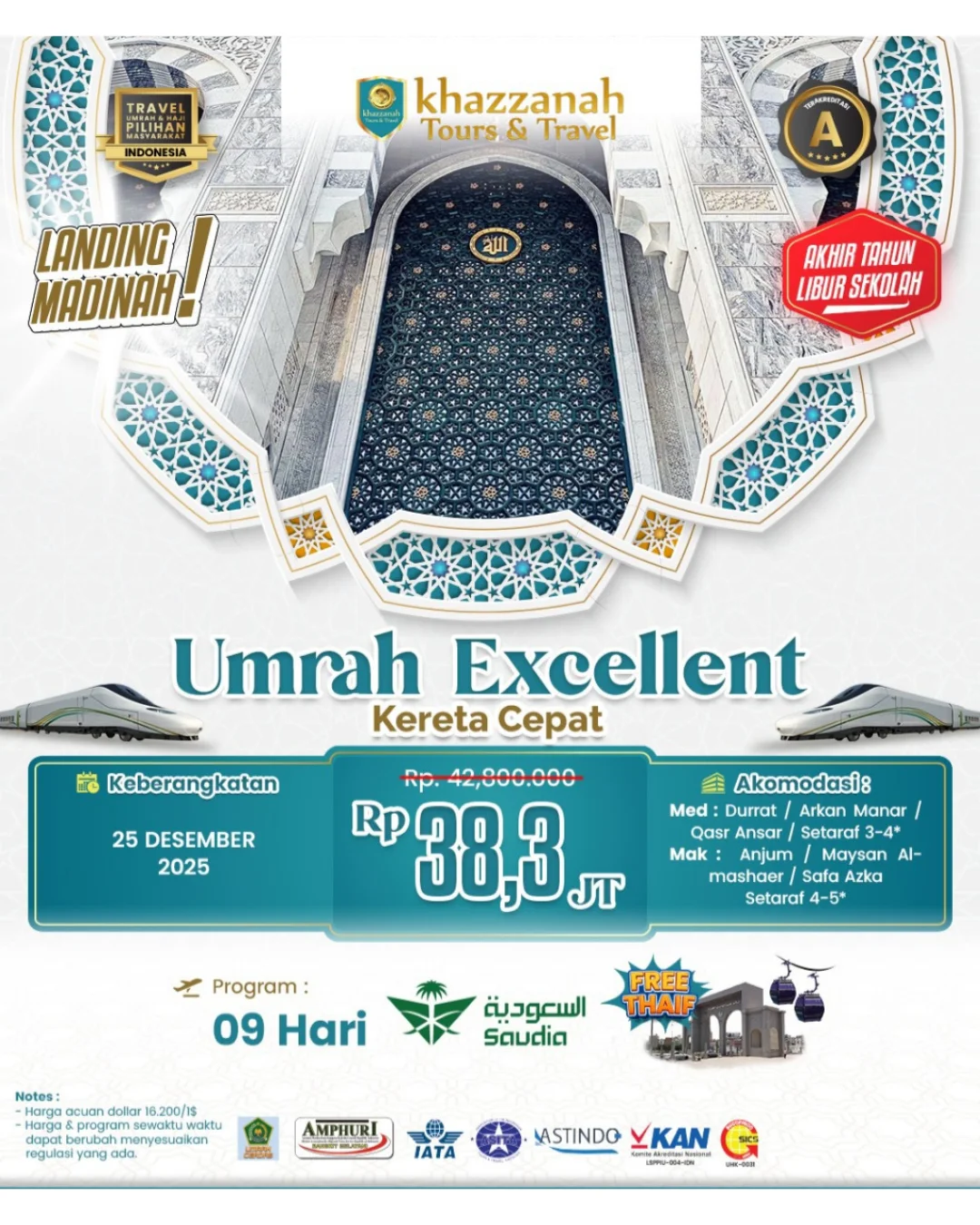 Umrah Excellent 9 Hari – Kereta Cepat