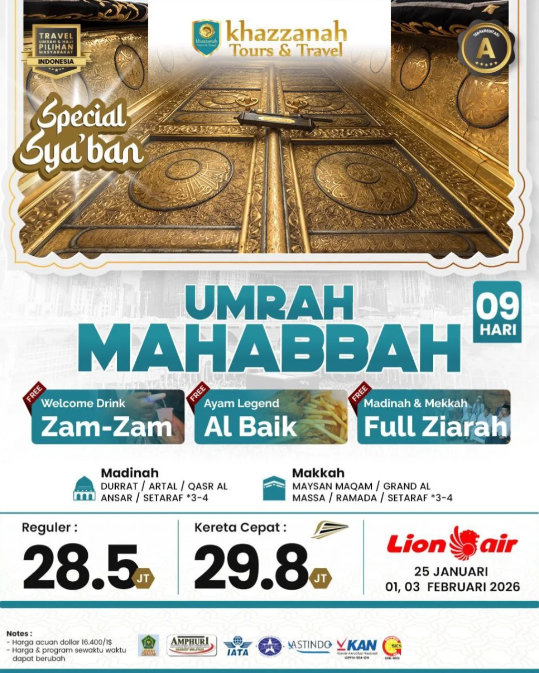 Berangkat: 25 Januari, 1 & 3 Februari 2026