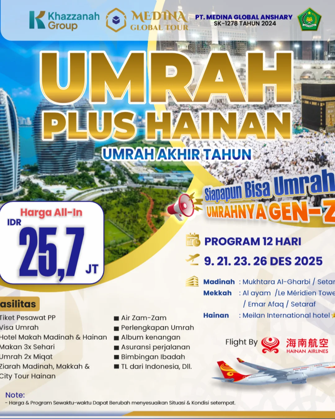 Umrah Plus Hainan Akhir Tahun 12 Hari (HABIS)