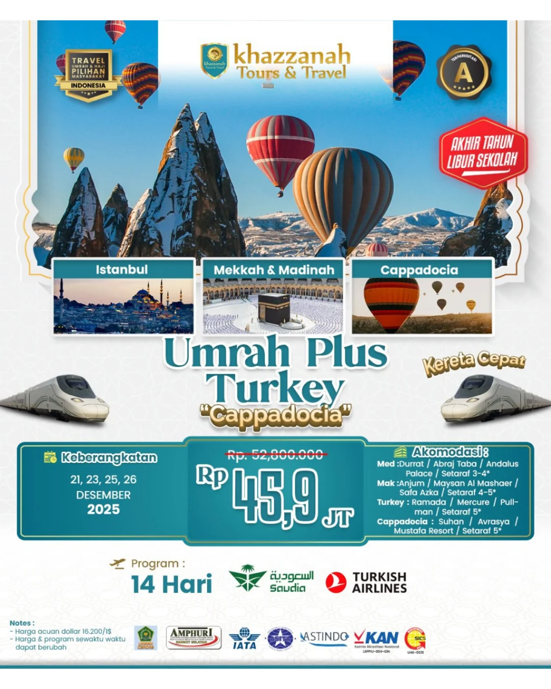 Umrah Plus Turkey Executive KC (Cappa) – Kereta Cepat