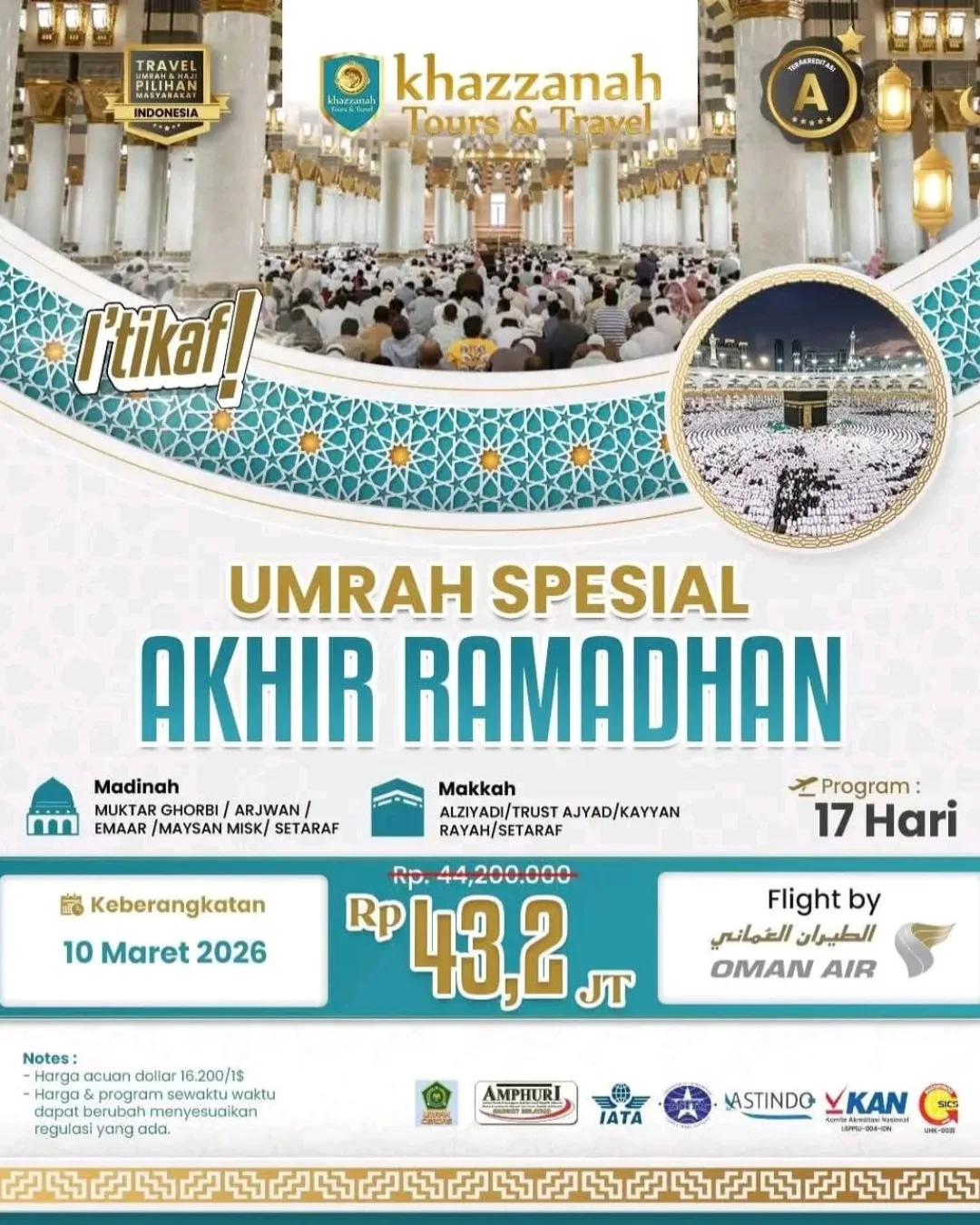 Be the first to review “Umrah Spesial Akhir Ramadhan 17 Hari Oman Air Landing Madinah”